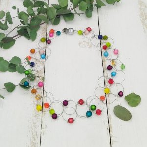 Regenbogen Halskette aus Stahldrahtringen mit Polaris- und Glasperlen